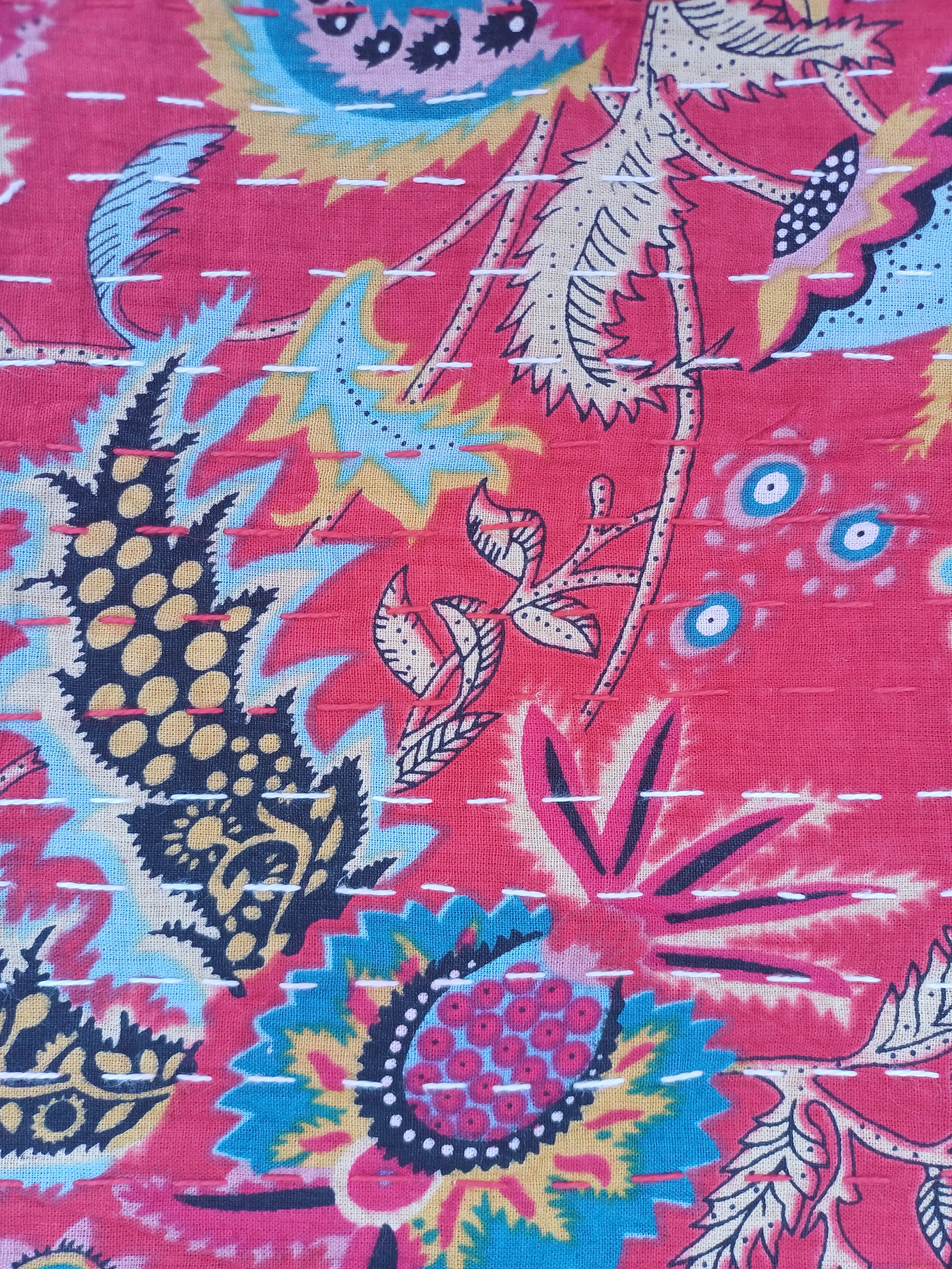 Bedspread Single (Kantha) Screen Print Gudari (2 layer) – Red Floral