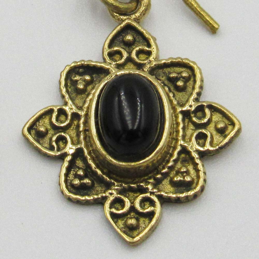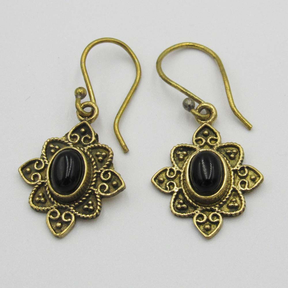 Brass-Plated Drop Earrings with Black Bead