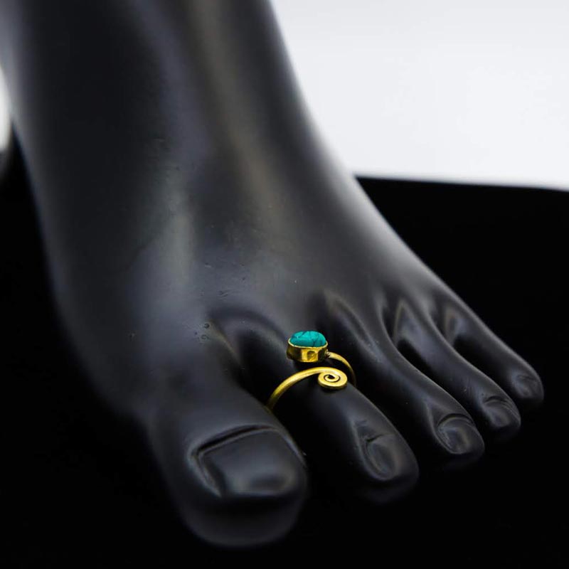 Brass Toe Ring Turquoise