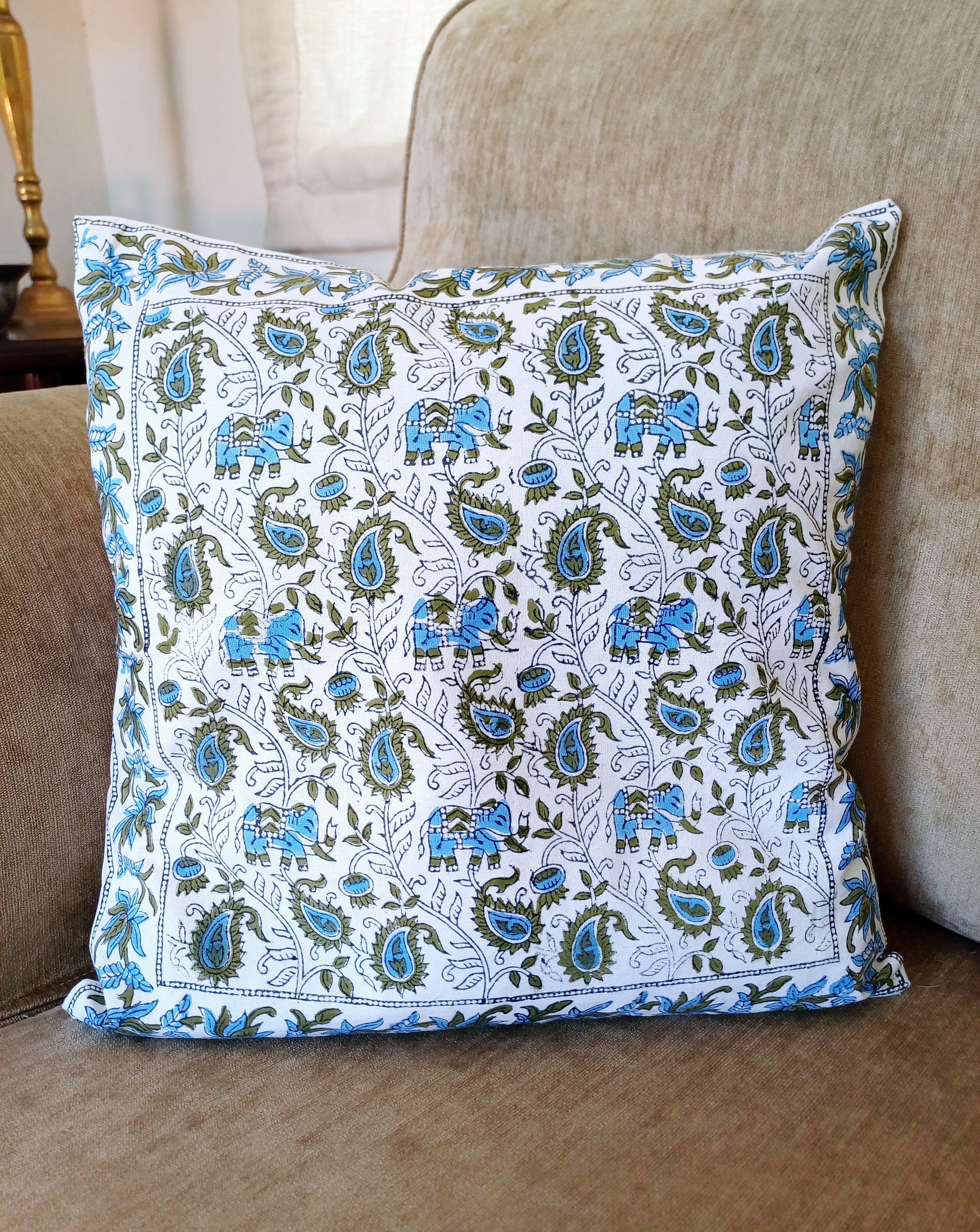 Cushion Cotton Cover Block Print Rapit – Blue / Green