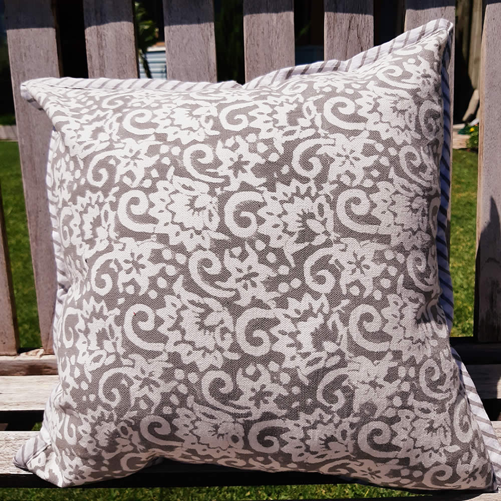 Canvas Cushion Cover - Grey Flower Motif quantity