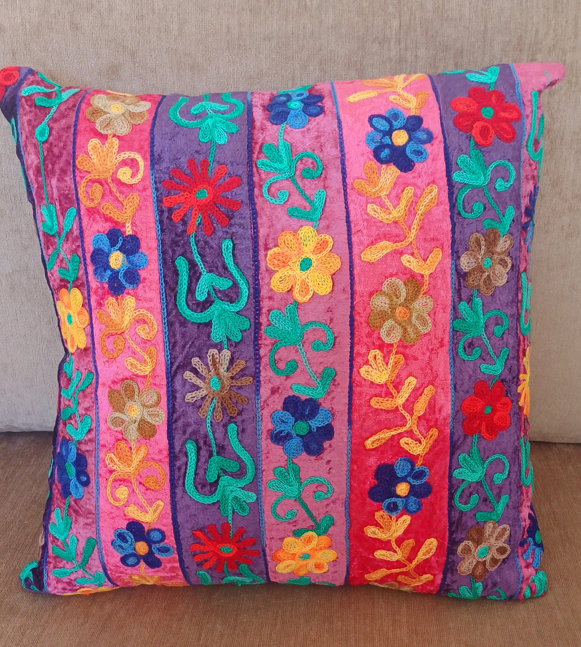 Embroidered Velvet Cushion – Exquisite Indian Craftsmanship