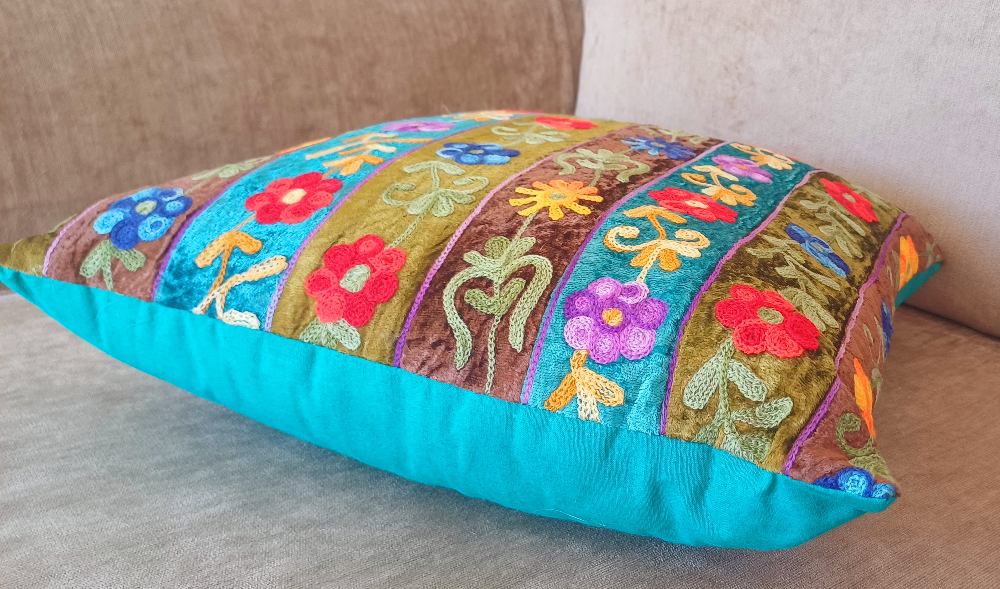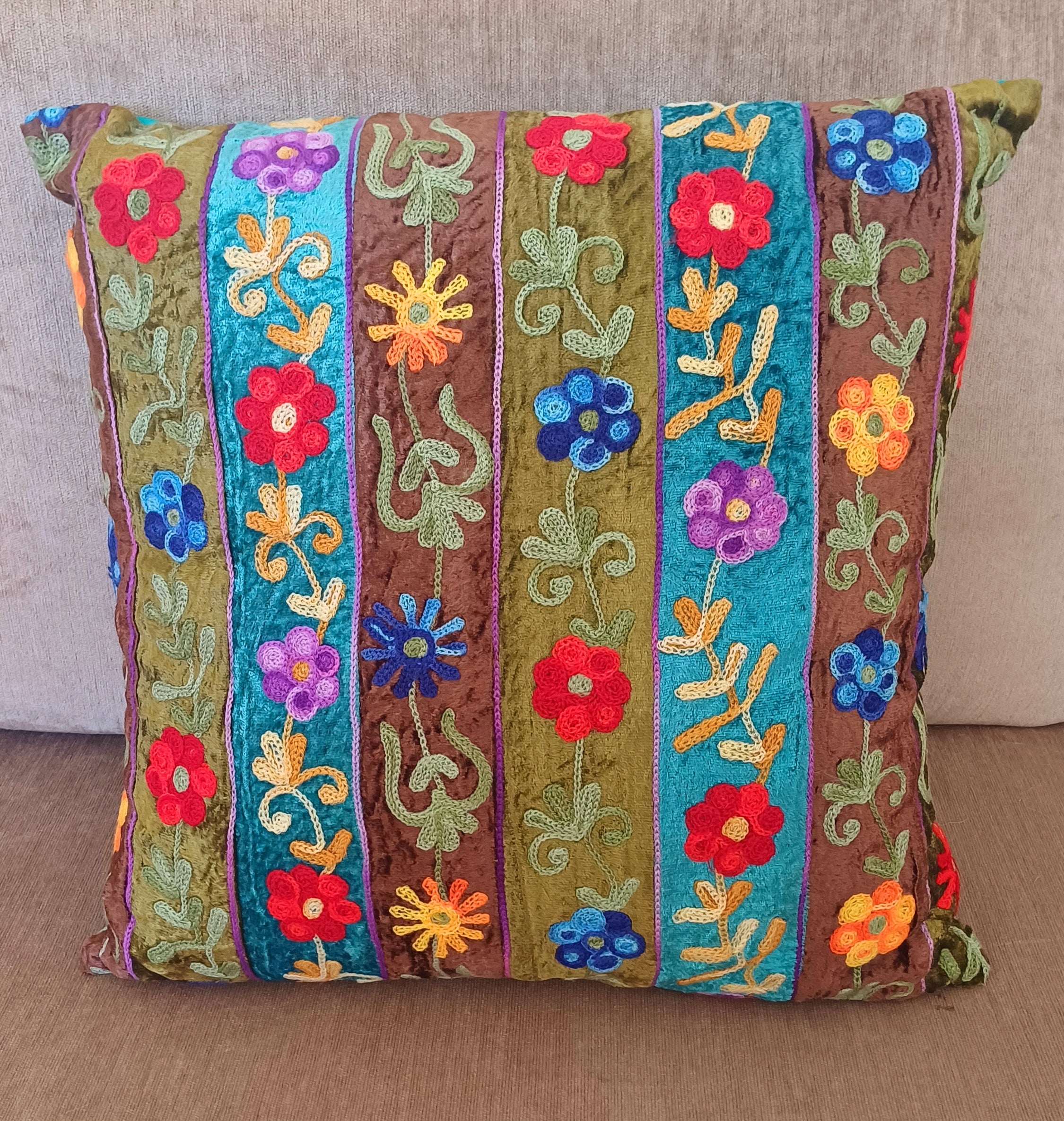 Embroidered Velvet Cushion – Exquisite Indian Craftsmanship
