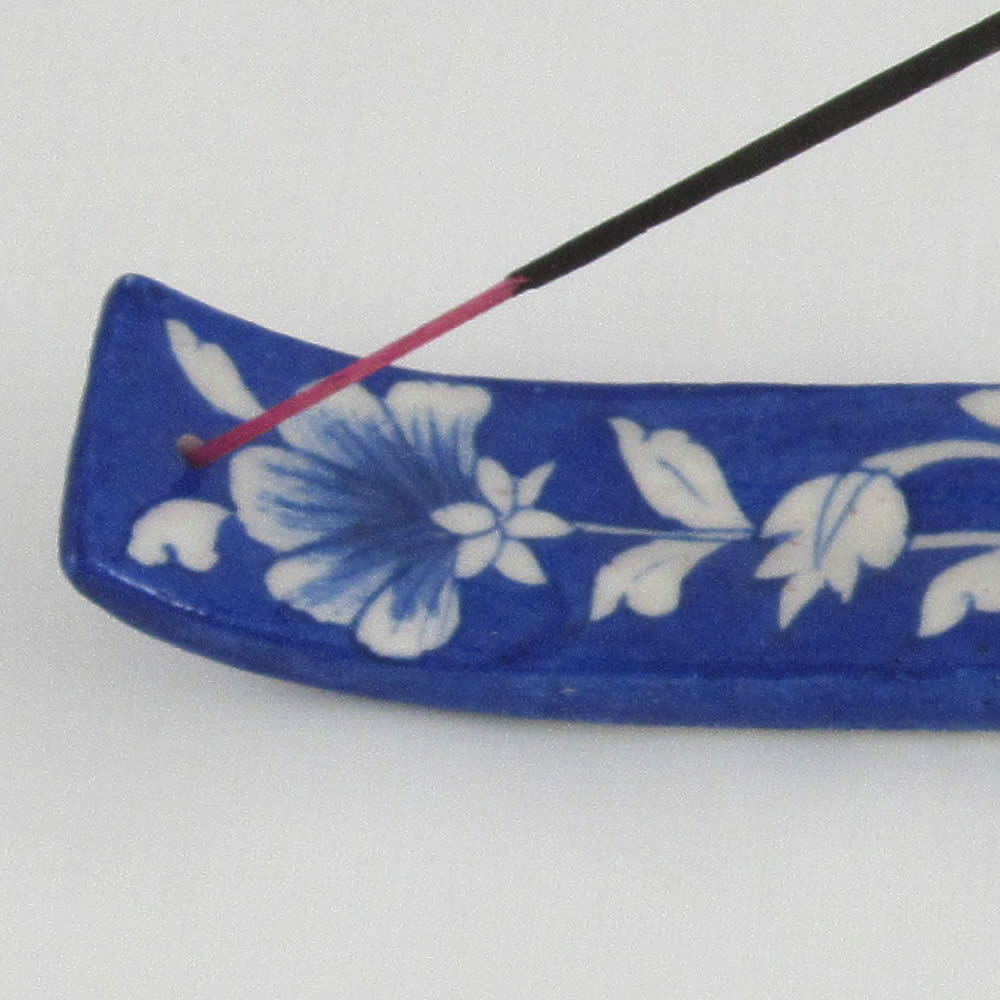 Pottery - Long Incense Holder - Dark Blue Floral quantity