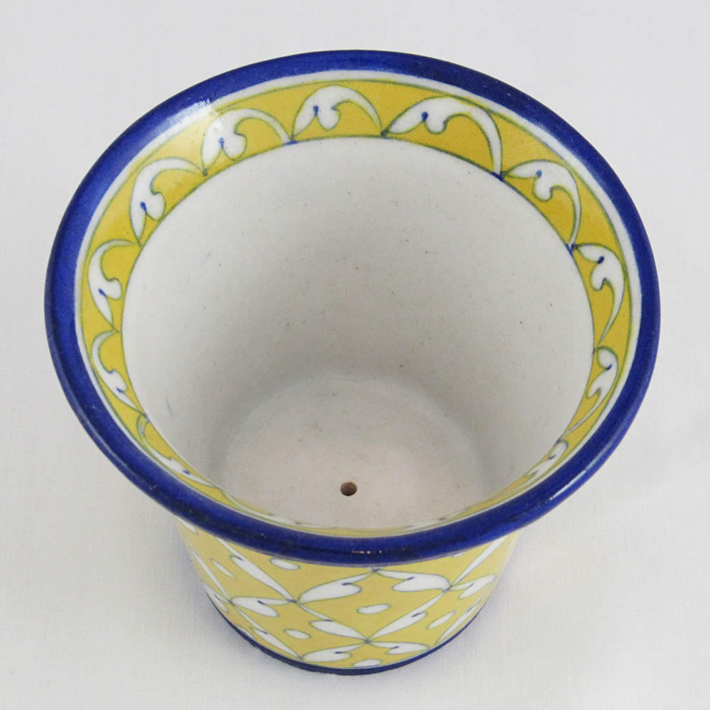 Pottery – Medium Planter Pot – White Butterflies on Yellow