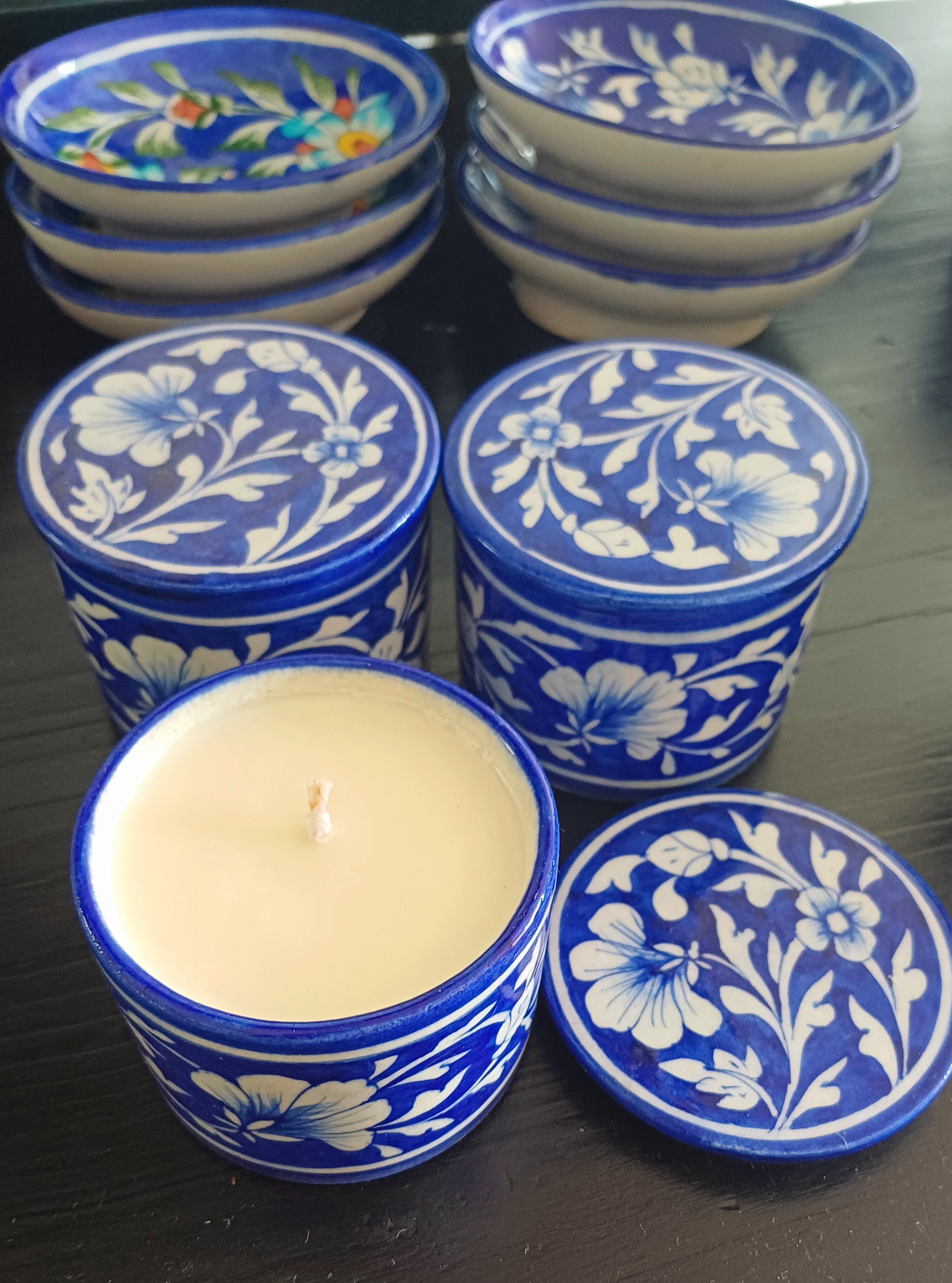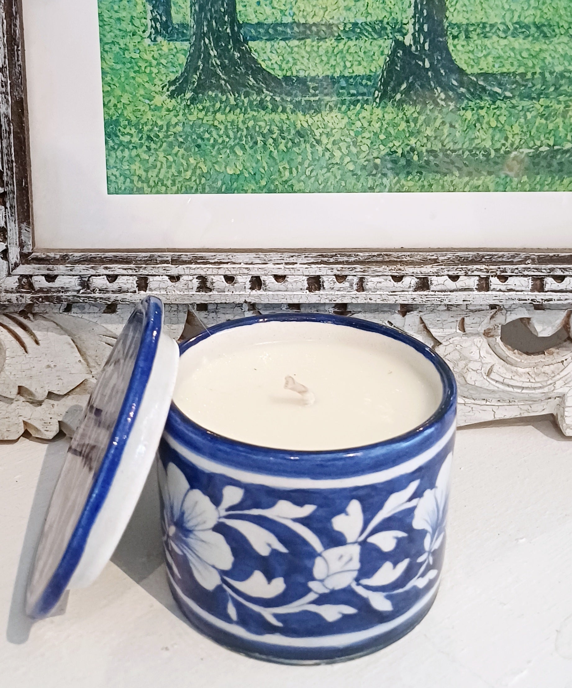 Jaipur Dark Blue Floral Pot with Citronella & Vanilla Soya Candle
