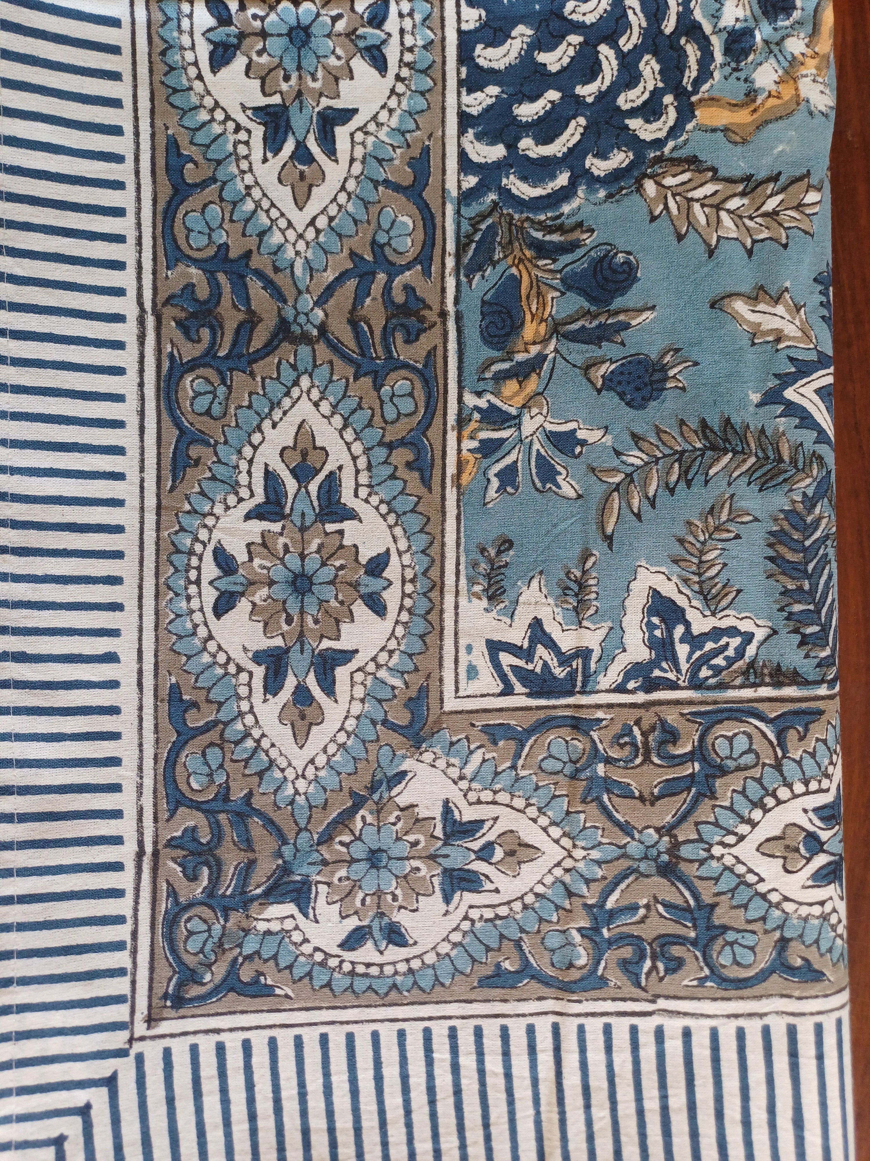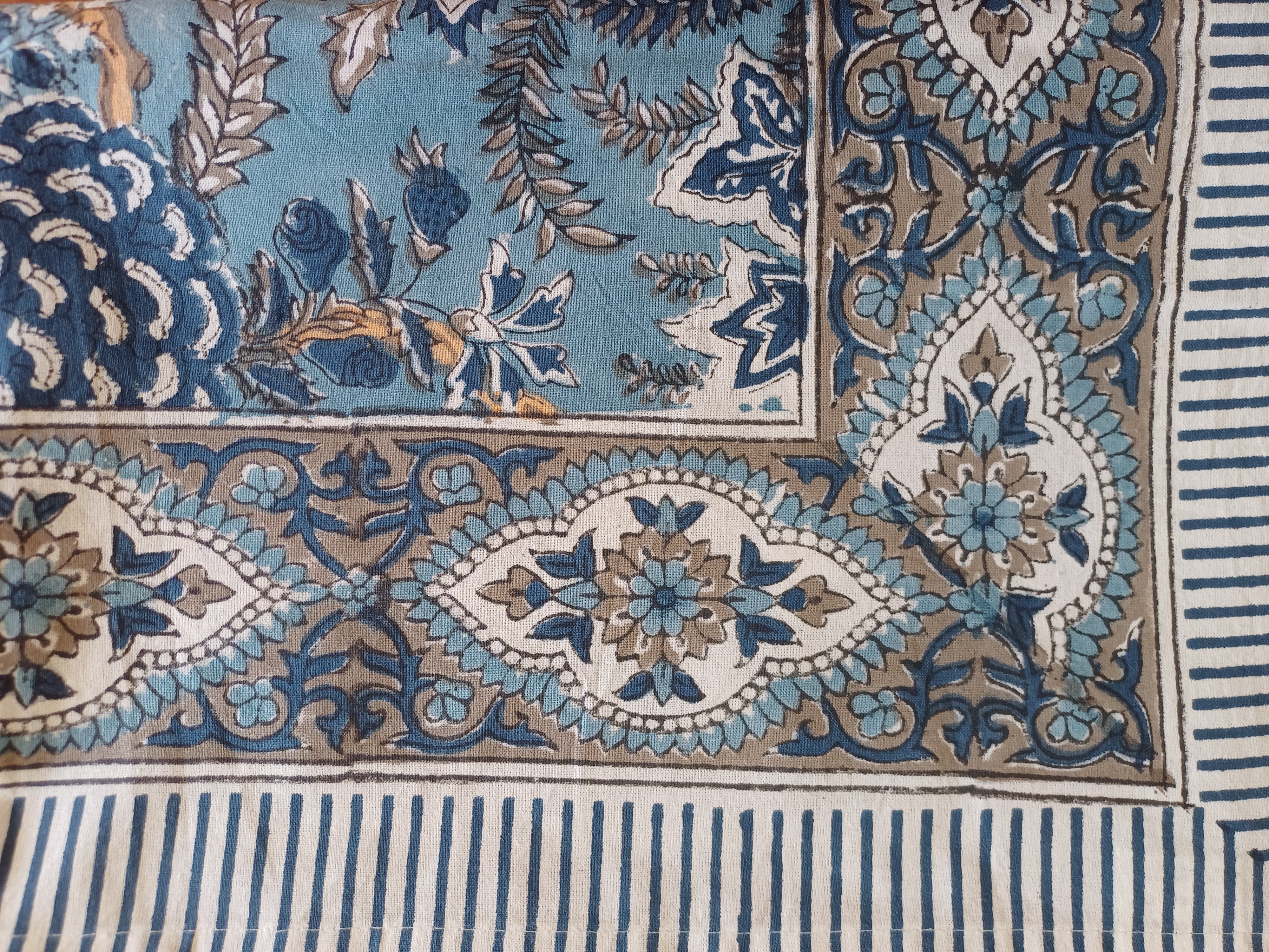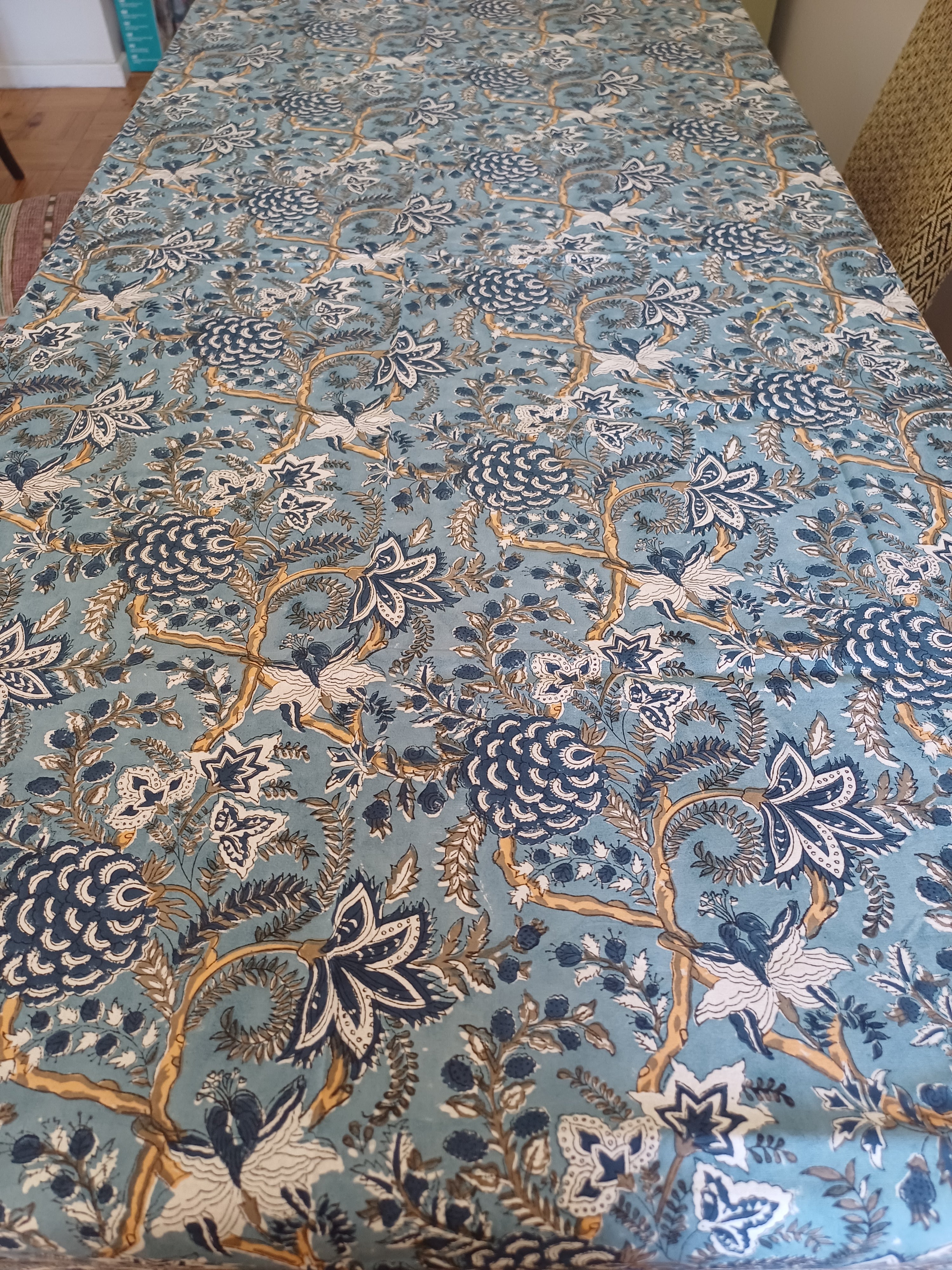 Table Cover Dark Blue Teal Block Print Mughal – 8 seater