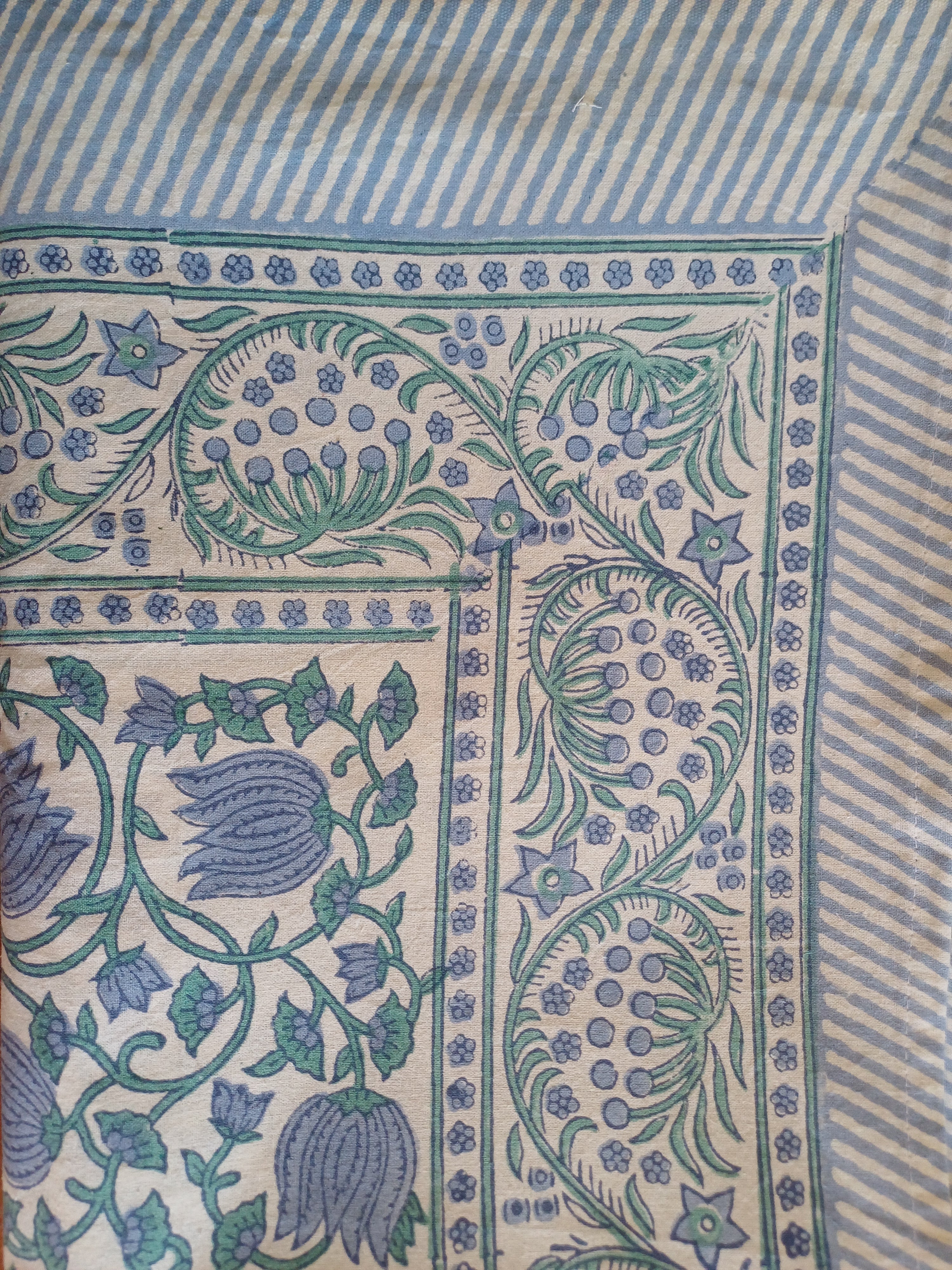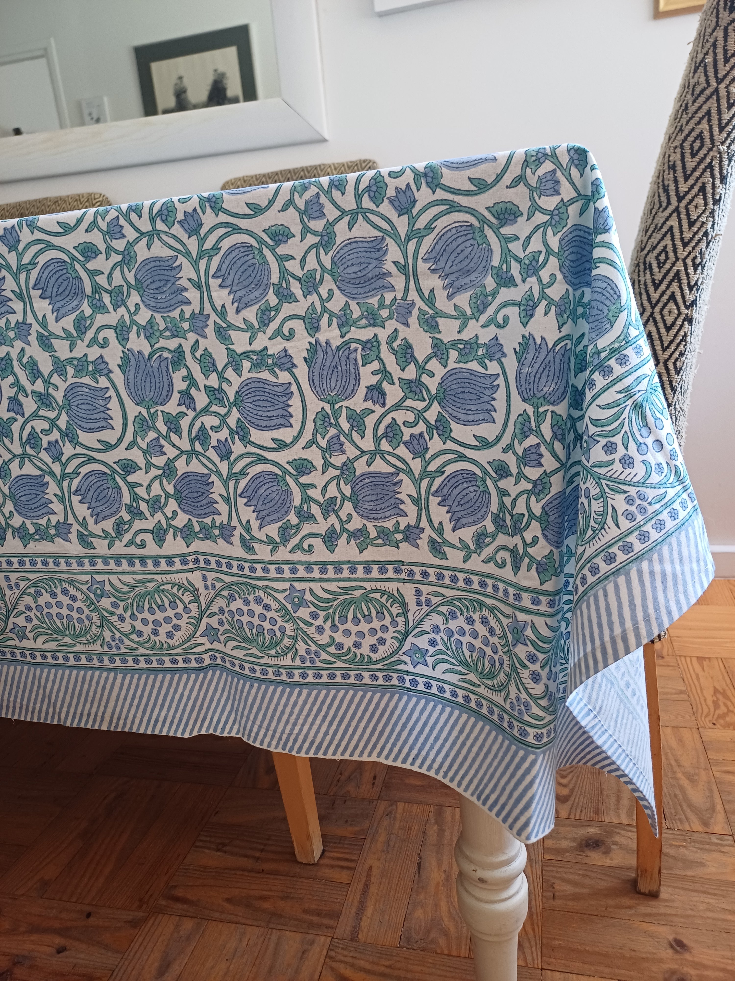 This vibrant 100% cotton table cover features a stunning Indian block-print design inspired by the majestic Mughal Empire. The intricate patterns and motifs, reminiscent of ancient Islamic art, are skilfully rendered in a palette of rich colours. The cover’s beauty is further enhanced by the traditional block-printing technique, which adds a unique texture and character to the fabric.
