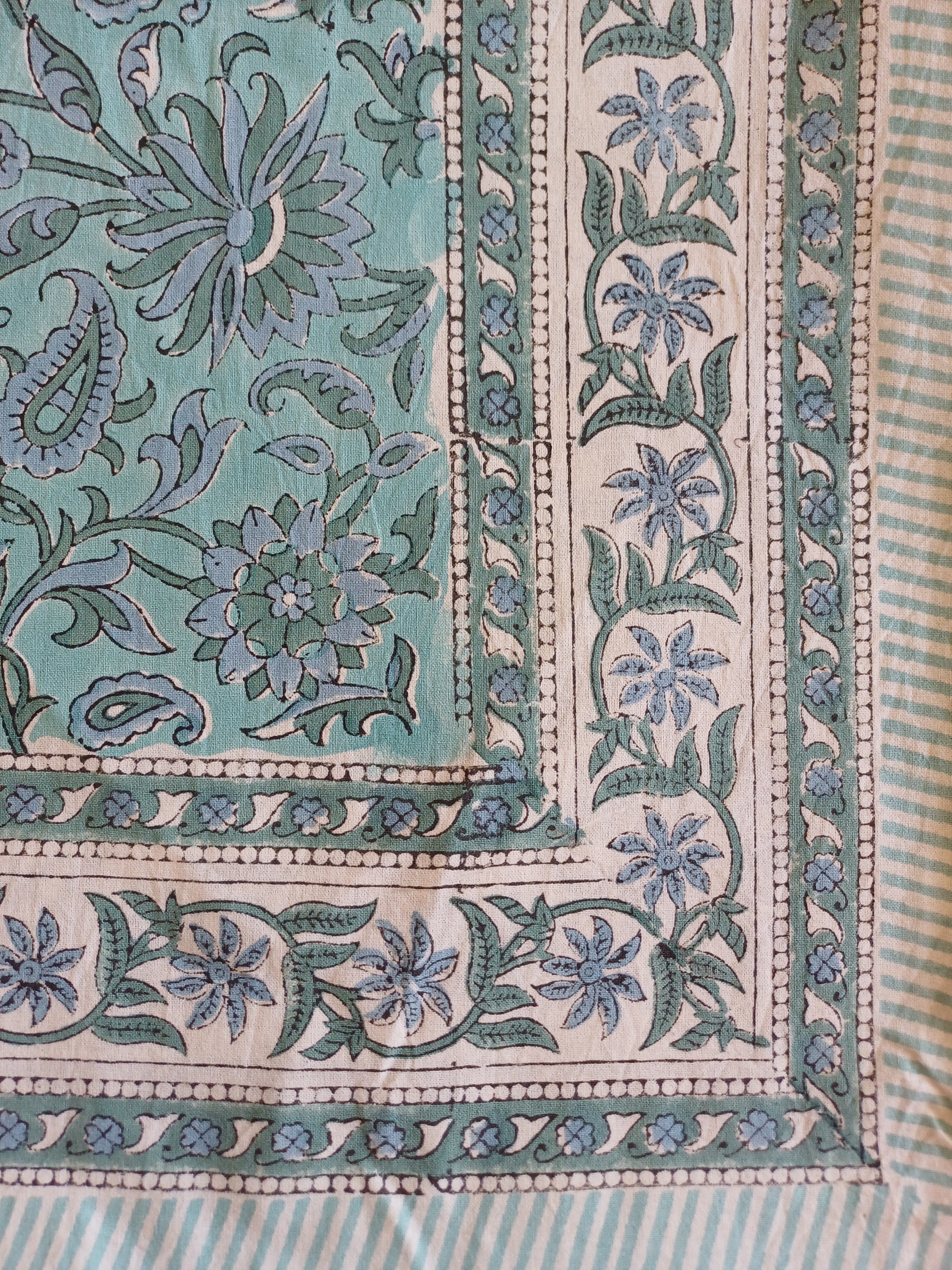 Table Cover Turquoise Block Print Mughal – 6 seater