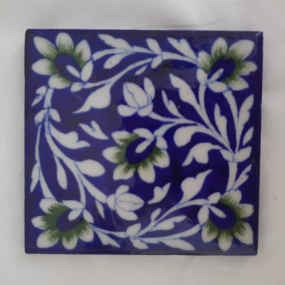 Tiles – Green Flowers on Dark Blue