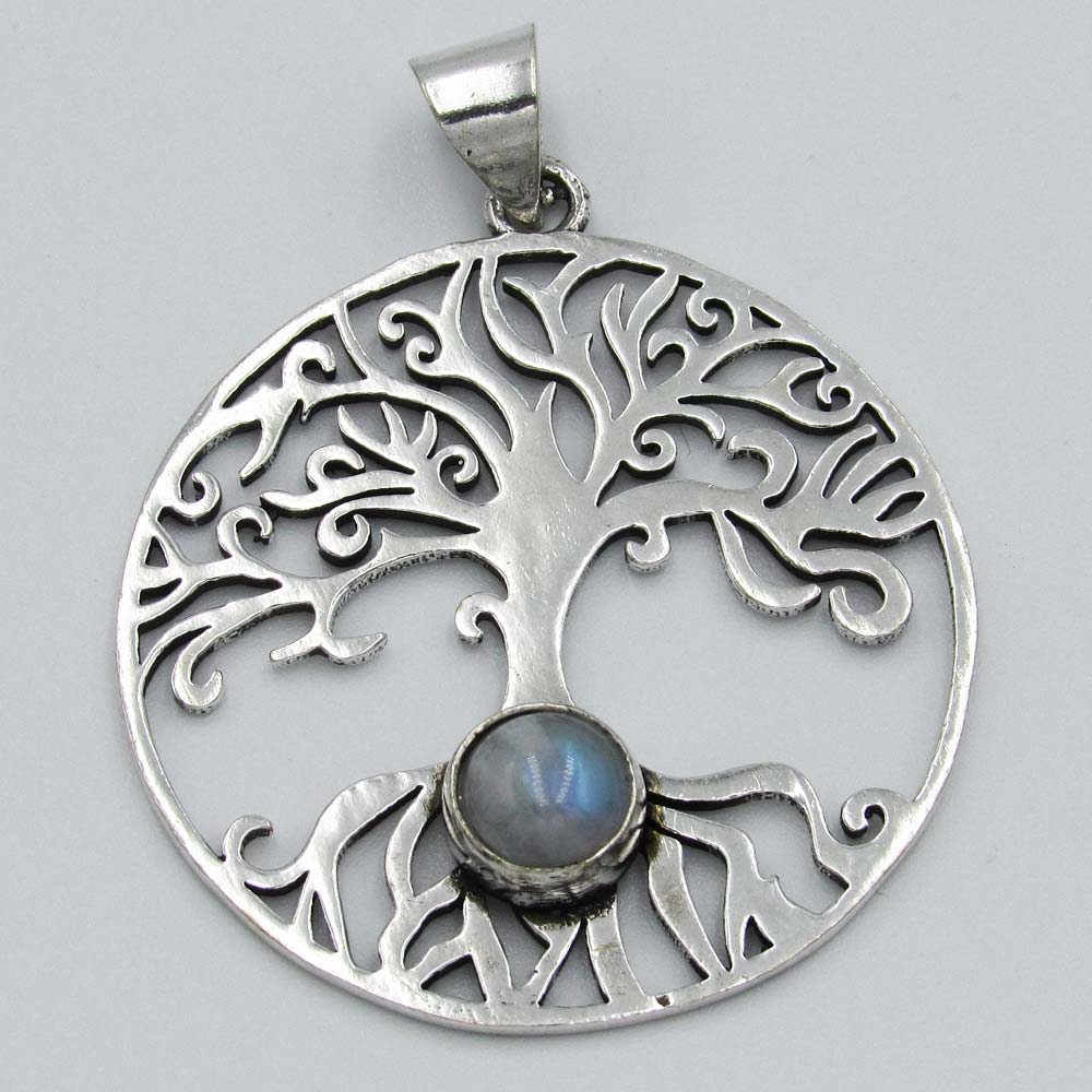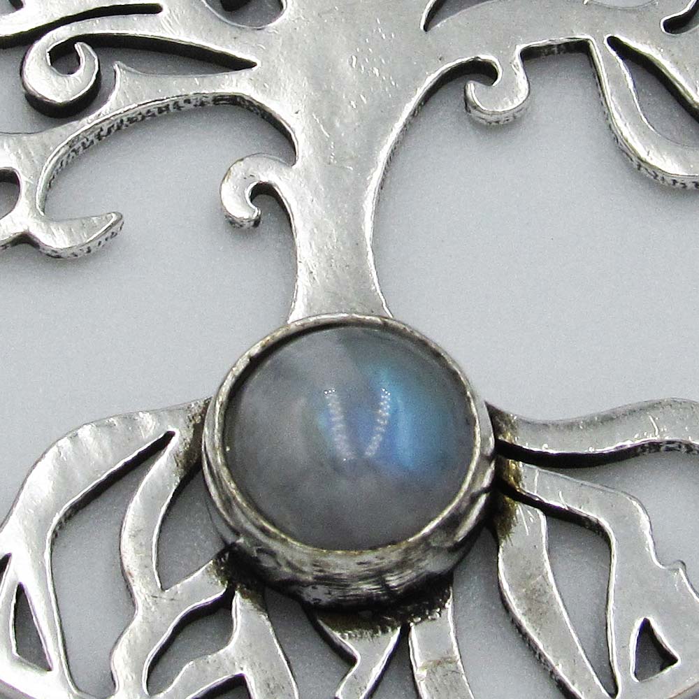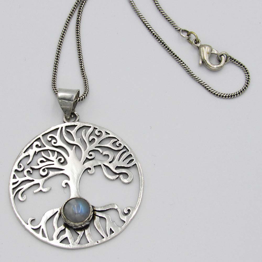 Tree of Life Pendant with Grey Bead – Silver Plated