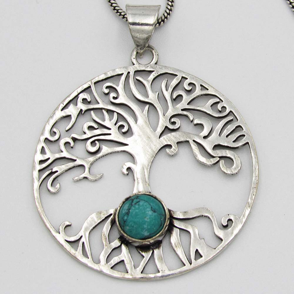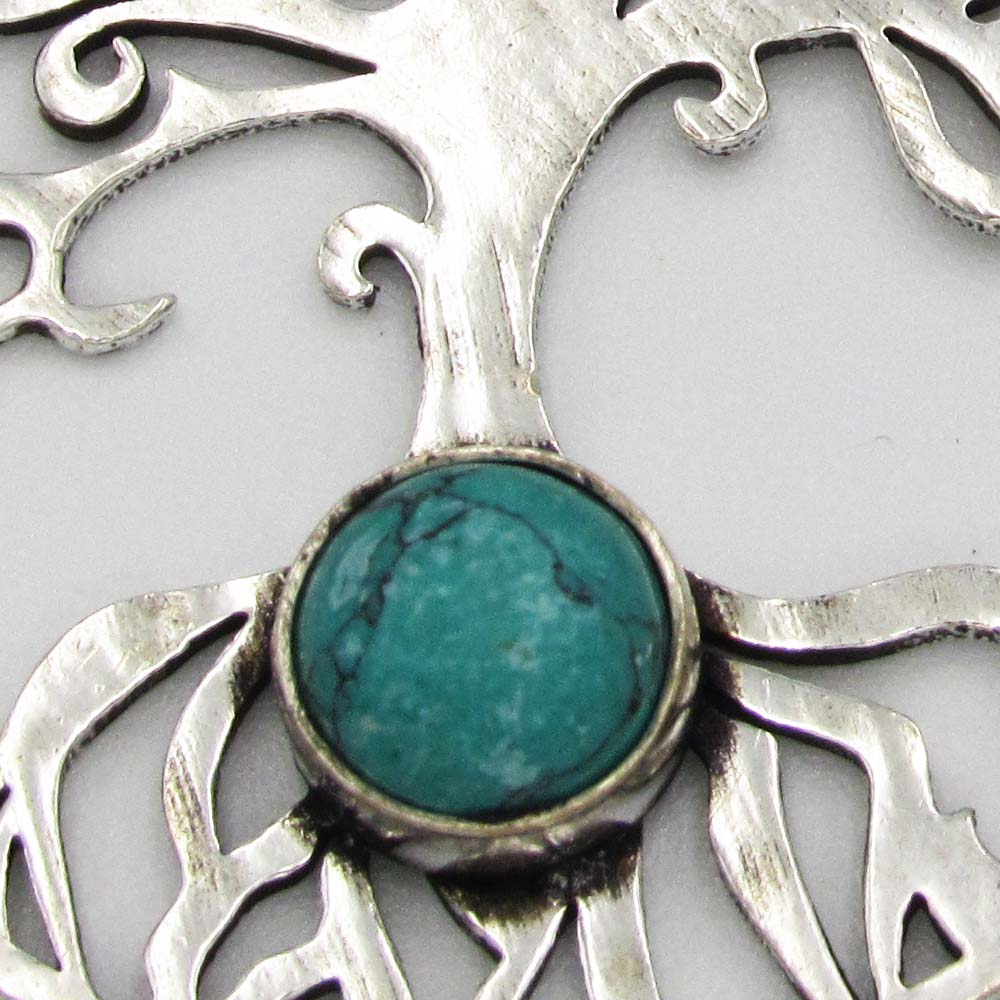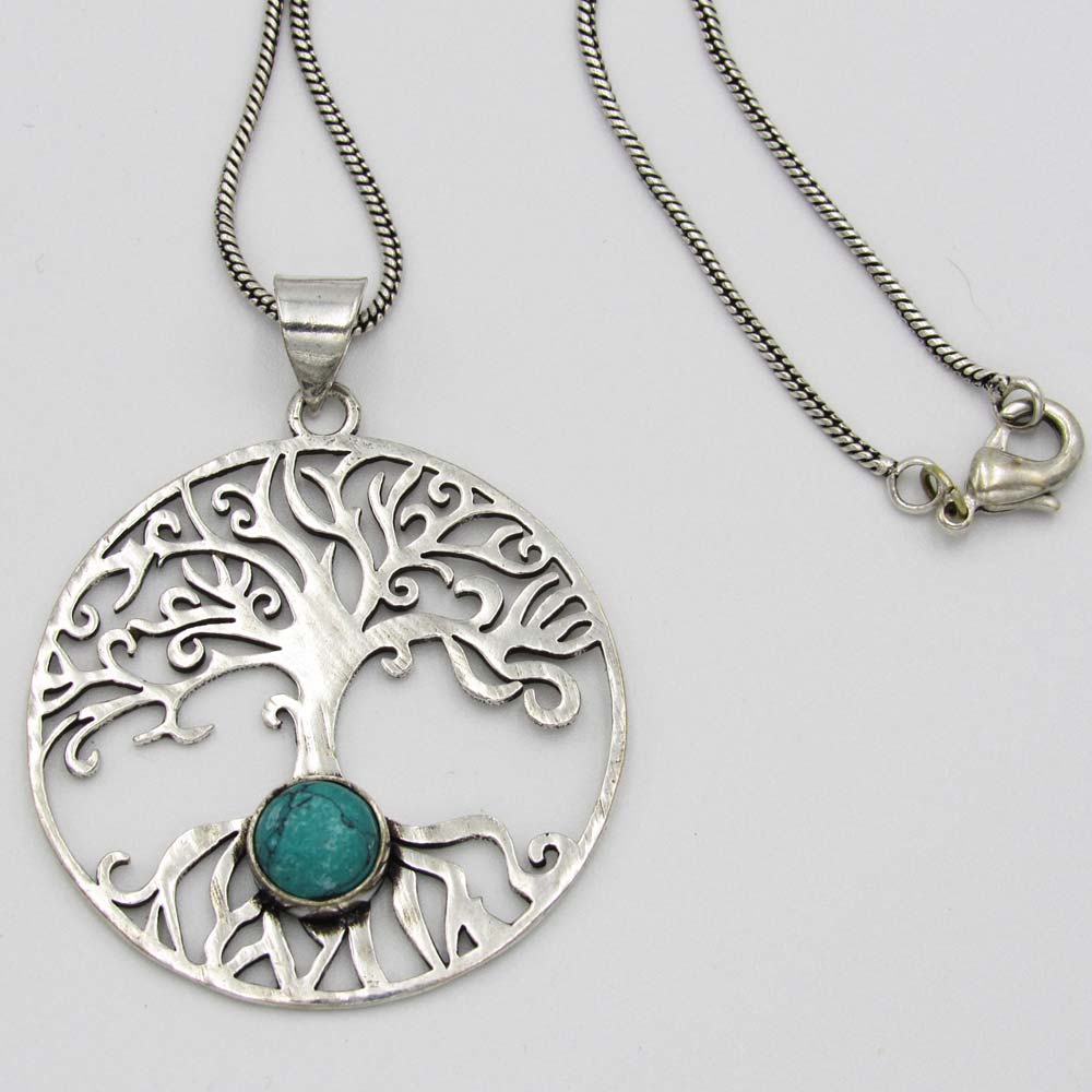 Tree of Life Pendant with Turquoise Bead – Silver Plated